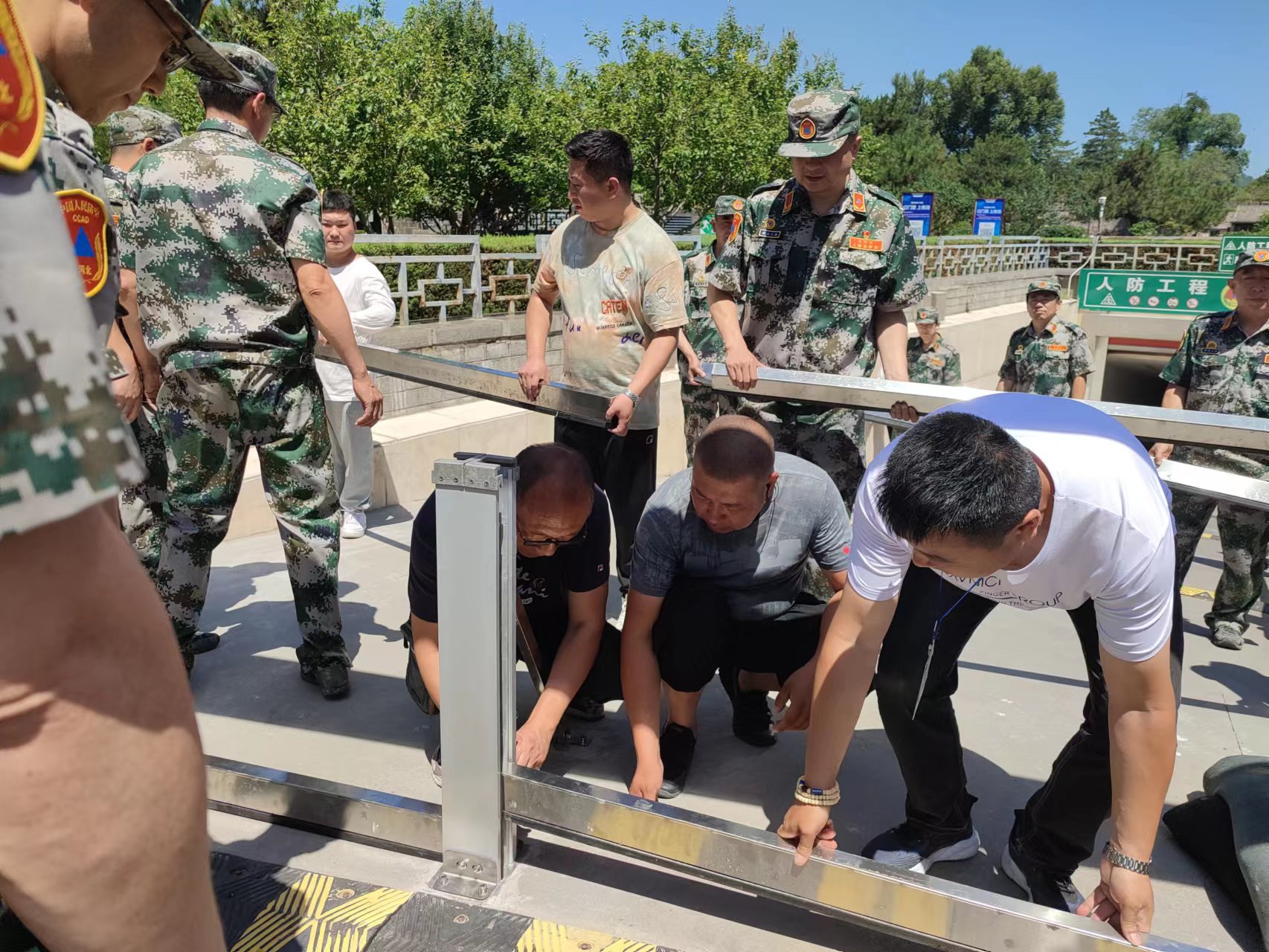 隨著現(xiàn)場(chǎng)指揮一聲令下,演練正式開(kāi)始。停車場(chǎng)及人防辦工作人員把演練當(dāng)做實(shí)戰(zhàn),按照演練前講解的防汛知識(shí)和注意事項(xiàng),協(xié)調(diào)配合、分工明確,緊張有序地安裝擋水板,堆堵防汛沙袋。