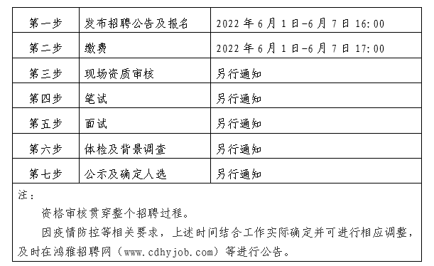2022年6月1日至2022年6月7日16:00 在鴻雅招聘網(wǎng)(http://www.cdhyjob.com/)、鴻雅微信公眾號、國控集團(tuán)官方網(wǎng)站(http://m.hfzlsm.com/)及上級部門要求的相關(guān)網(wǎng)站等發(fā)布招聘公告。