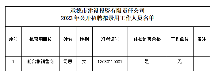 承德市建設(shè)投資有限責(zé)任公司2023年公開招聘擬錄用工作人員公示公告