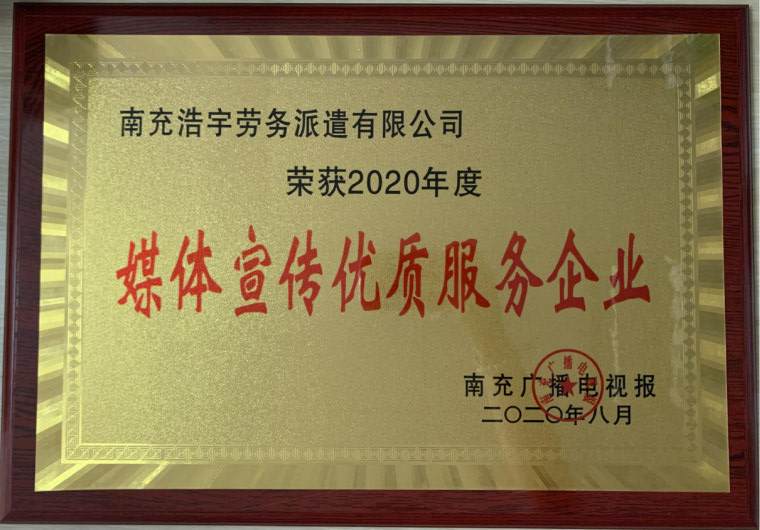我公司獲得2020年度媒體宣傳優(yōu)質服務企業(yè)
